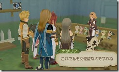Step into the Arena in Tales of the Abyss and you’ll run into other Tales characters. Mint Adenade (Phantasia), Philia Felice (Destiny), Reid Hershel (Eternia), and Nanaly Fletch (Destiny 2) are in the Tales of the Abyss. Here’s how the guest characters look in the Nintendo 3DS version.