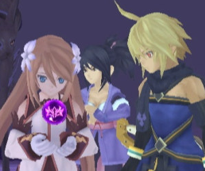 Stahn Aileron and Leon Magnus make up team Tales of Destiny. Kyle Dunamis and Reala from Tales of Destiny 2 are in the PSP spin-off as well. Screenshots also confirm Emil Castagnier and Marta Lualdi from Tales of Symphonia: Dawn of the New World as playable characters. Tales of the Heroes: Twin Brave has twenty four battlefields to fight on where players can pick up equipment like weapons and armor. The magazine also mentions Twin Brave will have an original story with comical scenarios.