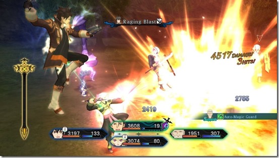 Which brings me to the aspect of Tales of Xillia that really stole my time – I love the new Dual Raid Linear Motion Battle System. Think of it like this, Tales of Xillia still has an active battle system that has players choose when to attack, block, dodge, run, change targets or use special skills called artes. What’s changed is that the character a player is using can partner up with another party member. Each partners has different incentives when working with a character. For example, if I have Milla paired with Alvin, and they’re attacking an enemy that’s guarding, Alvin will automatically break their guard.