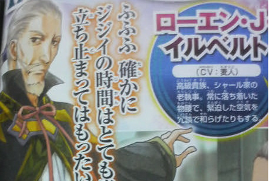 V-Jump also revealed a new character in Tales of Xillia. Rowen J. Elbert is sure to be the oldest in the group at 62 years old. He says while laughing that time is precious to a geezer like himself and to stop wasting it. In battle, Rowen uses a saber as his weapon.