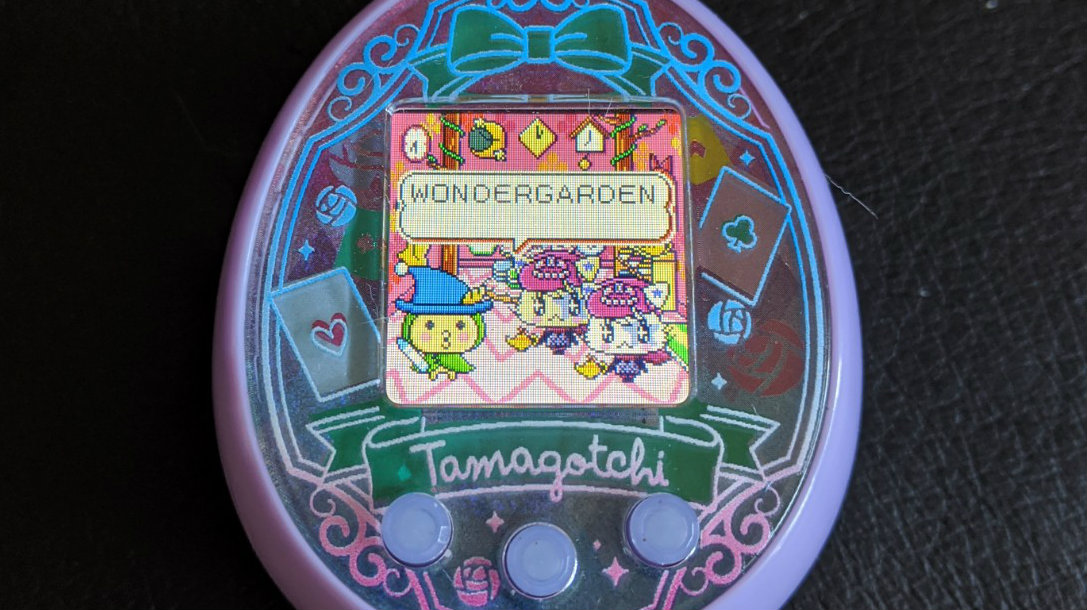 The Tamagotchi On Wonder Garden model’s one new location, Wondergarden, is the clearest reference. After I had reached the third generation of characters and applied the Alice in Wonderland-like Alice Picnic theme to my room, I unintentionally unlocked the new land. I wanted the twins I was raising to visit their pet. Instead, they ended up going to Wondergarden and opening up the town where Yumemi-Alice and Kirarihatter live. As their names suggest, the former is dressed like Alice and the latter as the Mad Hatter.
