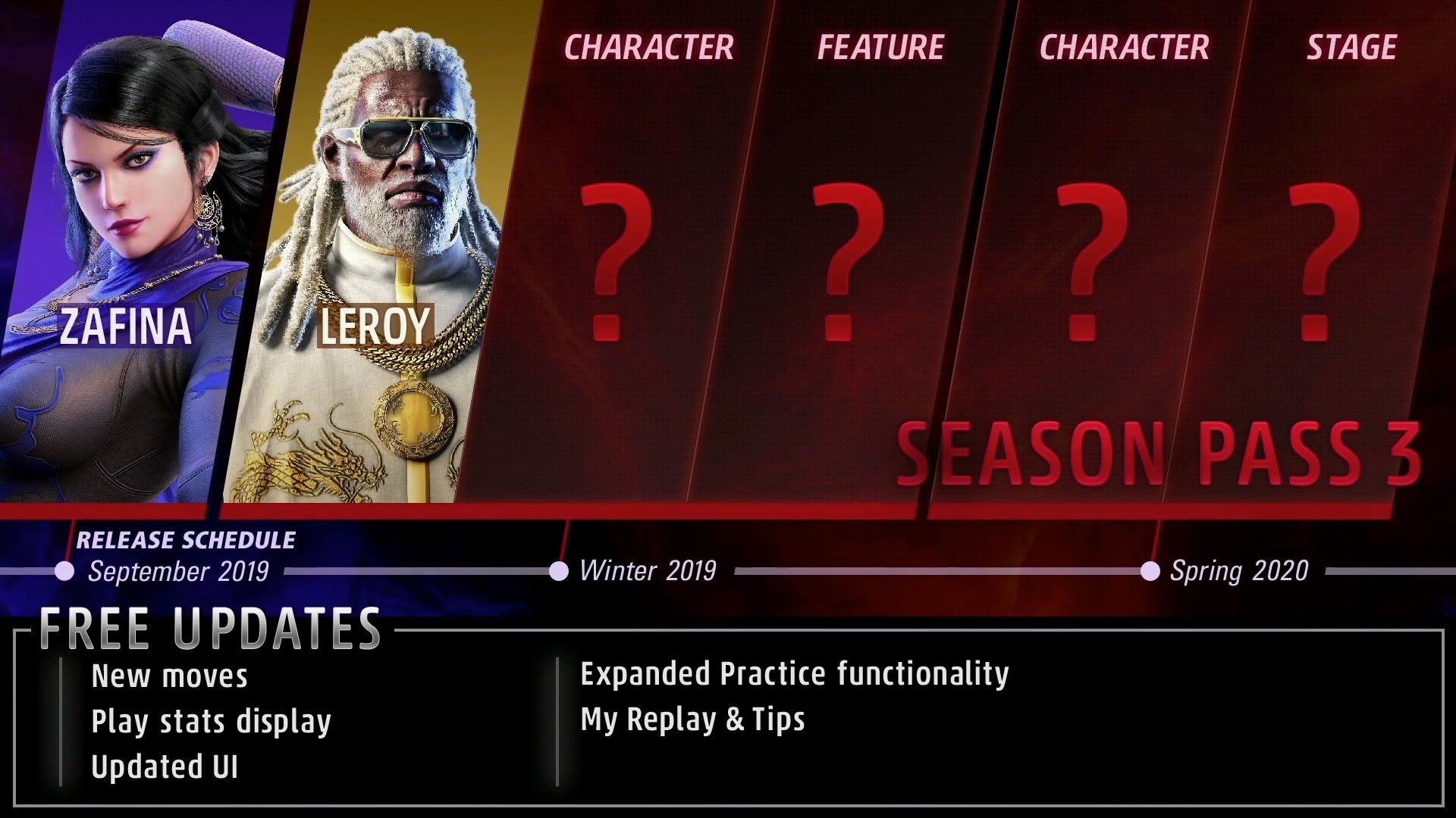 Season Pass 3 has four more characters yet to be revealed going into Spring 2020. There will be free updates with new moves, play stats display, updated UI, and more. Tekken 7 is available for PlayStation 4, Xbox One, and PC.