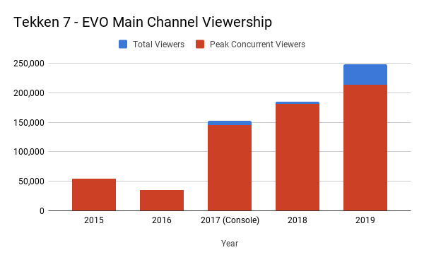 These charts represent the number of viewers for both Street Fighter V and Tekken 7 on the main EVO streams on Twitch.tv over the last few years. We’ve compiled them using stats meticulously tracked by Reddit user Starfirefeet, who shares them with the community each year. While they don’t account for mirrored streams hosted by other sites or Twitch channels, the counts do demonstrate that Tekken 7 is incredibly competitive in terms of viewership. It actually out-performed Street Fighter V on the EVO stream in 2019, and was the capper to the event that year. In fact, even during its best year in 2018—when popular streamer Ninja served as guest host for part of its finals—Street Fighter V’s total viewership numbers fell well short of Tekken 7’s 2019 count. Again, while these figures don’t account for every stream that is running during EVO, it does give one a sense of how both games are doing relative to one another. Tekken 7 will return to EVO once again this year, alongside Street Fighter V and a number of its other contemporaries. It should be interesting to see how the game holds up in viewership counts.