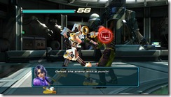 Fight Lab begins with Violet developing the most advanced Combot ever called Super Combot DX. Harada got to use it for one round before the story advanced and Violet accidentally destroyed Super Combot DX and part of the lab. Harada (and later on players) had to to start over with a tabula rasa Combot. In one part of the session, designed to teach players the importance of high, normal and low attacks, the Combot faced generic robots all the way up to a a boss fight against Jack-6. In each case, an indicator appeared on the body of the enemy showing where to punch or kick. As Harada went through the exercise, bombs would occasionally appear in empty spots and would damage Combot if they were hit. Towards the end, Harada had to pay attention where to punch since the target would constantly change. You earn development points to make the Combot stronger with new techniques as you progress through Fight Lab. Certain customization points are only available in this mode and those can be combined with other characters’ techniques to make Combot a powerful character. The idea is players, like the Combot, will refine their skills, which makes Fight Lab act a bit like a tutorial mode. Harada seemed especially proud of this feature.