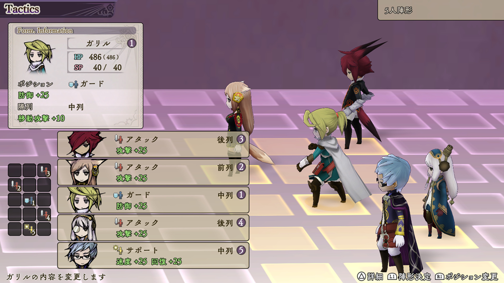 Guild function: Develop formations. Guild support: Increase the effects of positioning at the start of turn occasionally. Guild Girls