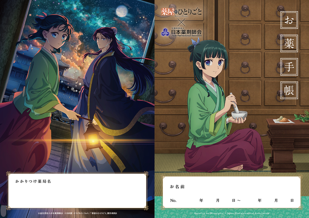 Imagica Infos revealed that it will collaborate with the Japan Pharmaceutical Association starting in March 2025. This collaboration will involve real pharmacies across Japan issuing exclusive medical notes notebooks featuring a design based on the anime adaptation of The Apothecary Diaries.