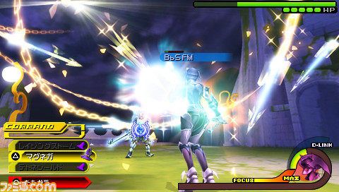 Square Enix created cooperative commands for Birth by Sleep’s multiplayer mode too. Voltage Bundle can be triggered when all three players target the same enemy. Unison Rush starts a set of quick time events where players have to press buttons on time.