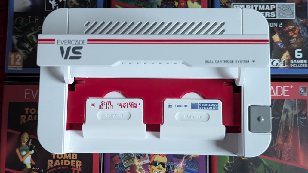 Tomb Raider has served as Blaze’s cornerstone release of the year, with the collection of three PS1 games included in the bundles for both the EXP-R and VS-R hardware revisions. Lara Croft might be the most recognizable mascot character it could hope to license, and even the earliest games in the franchise are more sweeping adventures than have been available in the Evercade’s quick-fun-focused selection. (It also probably didn’t hurt that Tomb Raider began its life at British studio Core Design; Blaze has shown a lot of love for its home.)