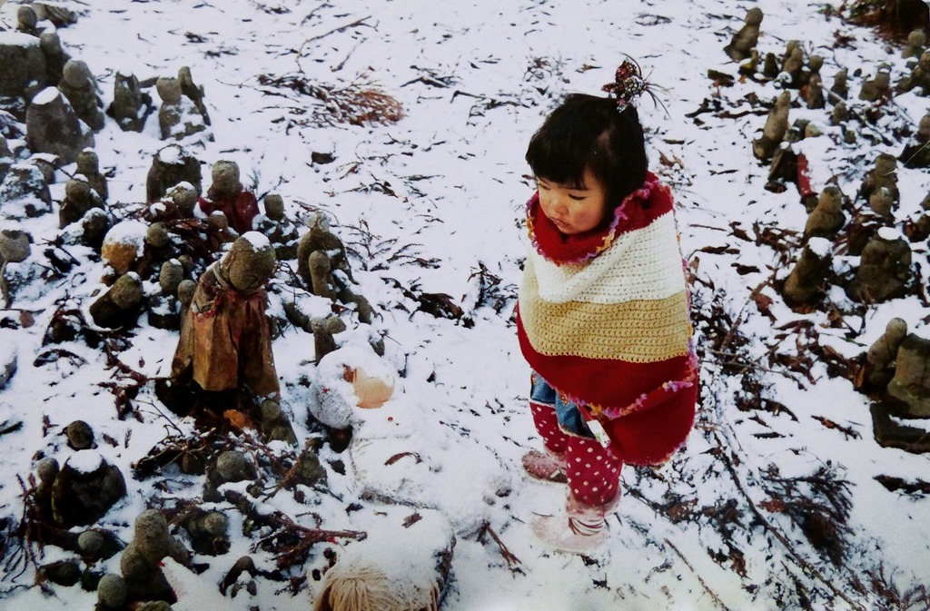 There’s a subtle scent of Terayama in Mirai-chan, a charming photobook. Probably because it takes place on the island of Sado. Harsh climate and troubled history: it was a place of banishment for important people (poets,artists and even an emperor). The contrast between the vivid small girl and the very old house where she lives, surrounded by ominous landscapes, made a strong impression on us.