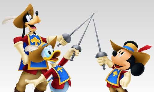 In previous Kingdom Hearts games King Mickey is running around on his own while Sora is traveling Goofy and Donald. Disney’s three icons are finally back together in Kingdom Hearts 3D: Dream Drop Distance in the Country of the Musketeers world.