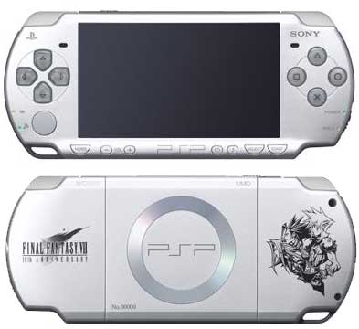 On September 13 Square-Enix is going to release a limited edition PSP Slim package for Crisis Core: Final Fantasy VII. The special silver PSP also comes with Zack’s buster sword and limited edition UMD box art. The Crisis Core: Final Fantasy VII PSP bundle is limited to 77,777 models (those clever marketing folks!) and it retails for 25,890 yen ($212). That is around the same price as the limited edition Star Wars slim PSP that North America gets this holiday season. Which would you rather have?