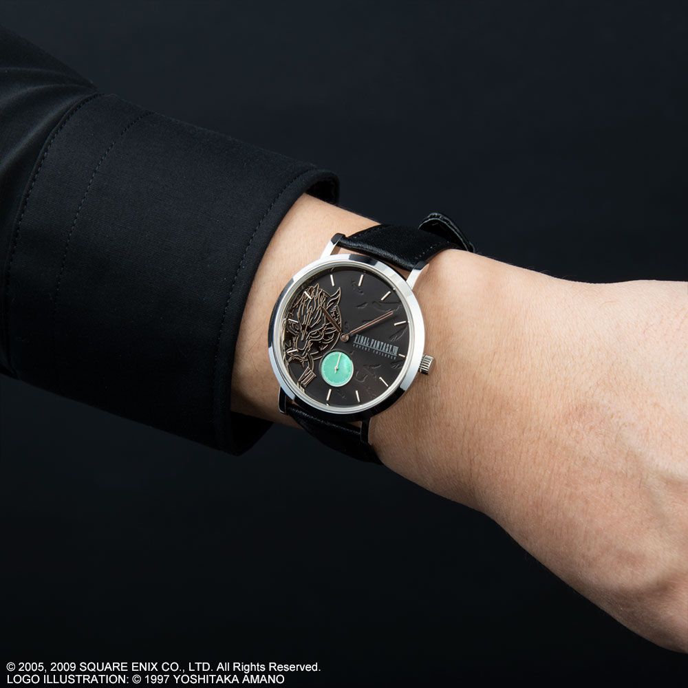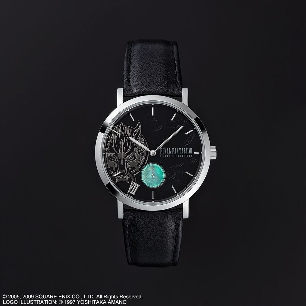 Back in March 2021, Square Enix revealed Final Fantasy Advent Children watches would appear in Japan. However, at the time it didn’t note if there would be a worldwide release. Well, now the North American Square Enix Store has listings for the 34mm and 39mm FFVII Advent Children watch models up for $349.99 each. They’ll ship in November 2021. Both of these FFVII Advent Children watch models are identical to the ones already revealed for Japan. The faces are green, they have a green Mother of Pearl subdial, a stainless steel case, a black leather band, and are waterproof up to 5 ATM. Each one also has Cloud’s wolf in a gunmetal color on the left side of the face, a few of Sephiroth’s feathers from his wing on the right, and VII in the seven spot. The back of the watch has the logo for the movie etched into it. Here’s a closer look at the designs again.