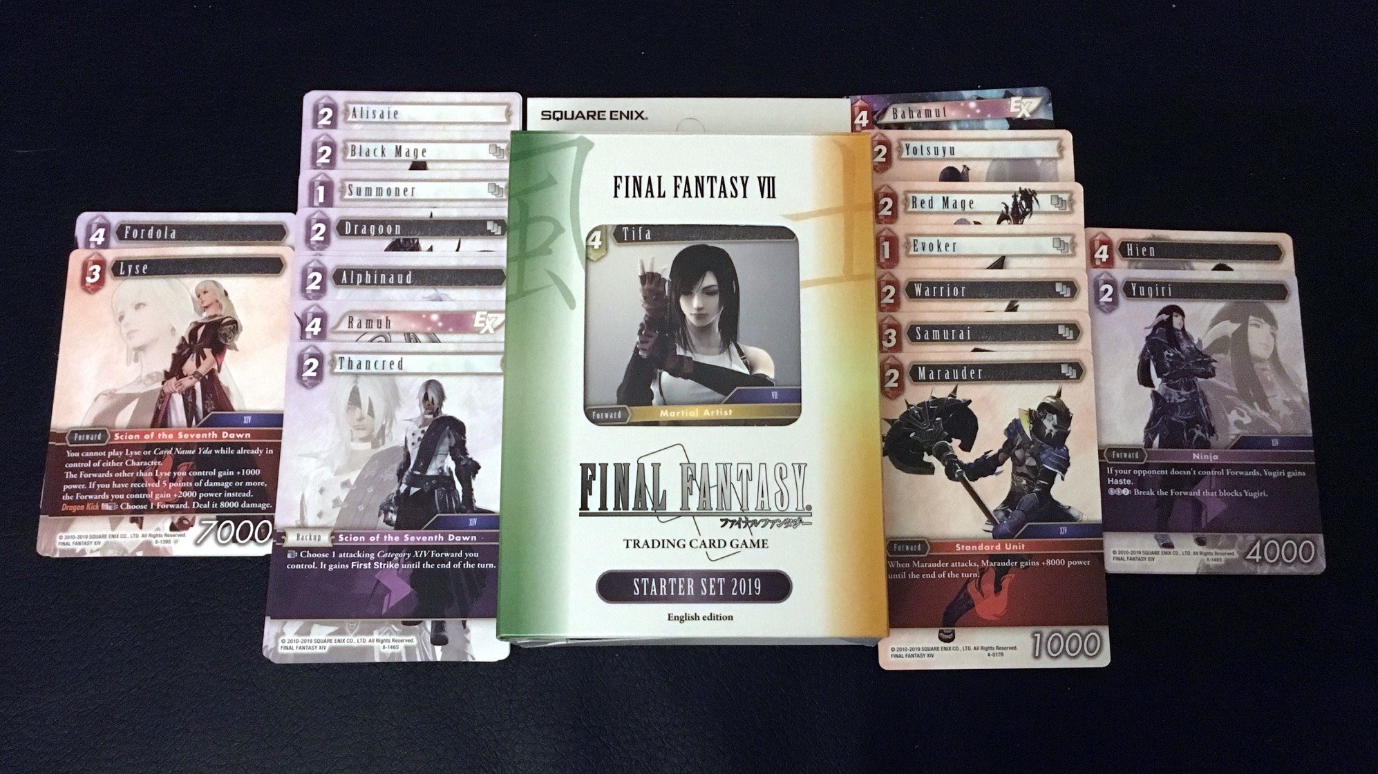 The Final Fantasy Trading Card Game is a staple in the card game community. The first decks made their debut in Japan in 2012, it went worldwide in 2016, and now the Opus VIII Starter Sets and booster release will be released on March 22, 2019. These new decks and accompanying booster cards rely on iconic characters from two Final Fantasy games with enduring popularity and fervent audiences, while also providing an accessible entry point for the series and sense of general cohesiveness. If someone gets the latest Final Fantasy VII or Final Fantasy XIV, they will find it easy to understand and maybe even have an idea of which cards will work well together based on familiarity with certain people. An important thing to note about the games is the clarity with packaging. If someone is getting into Final Fantasy Trading Card Game for the first time, a deck box can say a lot. Cards have one of six elemental affiliations. The element tells you the general approach for using that kind of card, letting you know what sorts of strategies you are using or your opponent could play if you know the color. As you play the game, you are also discarding cards or dulling them (turning a card sideways to make it inactive for that turn) to earn certain amounts of Crystal Points (CP) for that element. If someone looks at the box for the Final Fantasy XIV Starter Set 2019, they will the colors on the sides note it is a fire and lightning deck. Fire cards are primarily offensive and are great for taking out an enemy’s characters that could damage you, as does lightning. Both are about hitting your foe hard, with the lightning cards usually requiring a little less prep-work. The Final Fantasy VII Starter Set 2019 is a little more thoughtful, due to it consisting of earth and wind cards. It’s a good counterpart to the other Opus VIII deck, as the earth cards are defensive tanks, with the wind cards being easier to play and involving quick attacks. It is all a part of the game’s general friendliness. The included instructions are very in depth, there is an online tutorial that walks you through turns that can be played in a browser, and the elements’ natures seem like they make sense at a glance.
