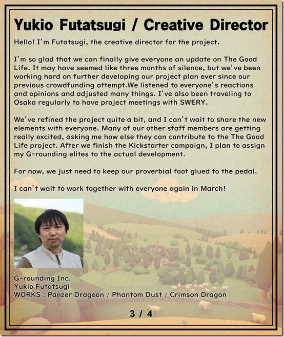 The Good Life is in development for PlayStation 4 and PC, but we may see some changes when the crowdfunding campaign relaunches. You can also read more from SWERY in Siliconera’s interview, where he talked about making interesting characters, the small town life, and art style.