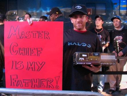 All around news crews beamed interviews with cosplayers, the gamers that slowly filed into the line, and the invited celebrities directly into the televisions of everyone in America. Middle-aged women stopped their stroll on the street awestruck and confused, wondering what Halo was. Street gawkers everywhere scrambled for free promotional items for a game they knew nothing about nor cared. Microsoft wanted exposure, and they were getting it in spades.