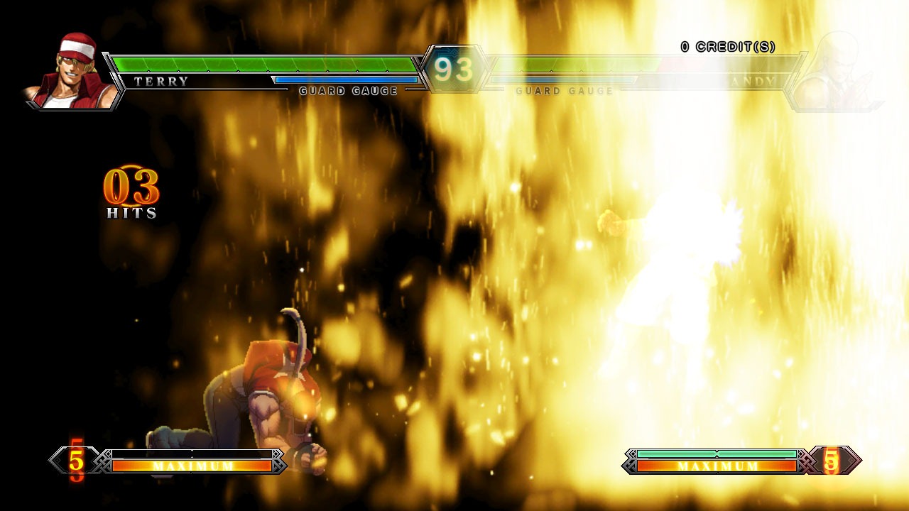 One other interesting thing to note about EX moves is that they may make you re-think your control scheme if you’re playing on a joystick. Initially I played with the traditional KOF control scheme where A, B, and C are located on my first row of buttons, and D on the second. But over time I noticed that whenever I tried to execute an EX move, I would accidentally hit A+B instead of A+C for punch moves, and C+D instead of B+D for kick ones. (For those of you who’re not familiar with KOF notations, A is light punch, B is light kick, C is heavy punch, and D heavy kick.)This was such a big problem for me that I eventually decided to change my control scheme to A and C on the first row, B and D on the second – Capcom vs. SNK style.