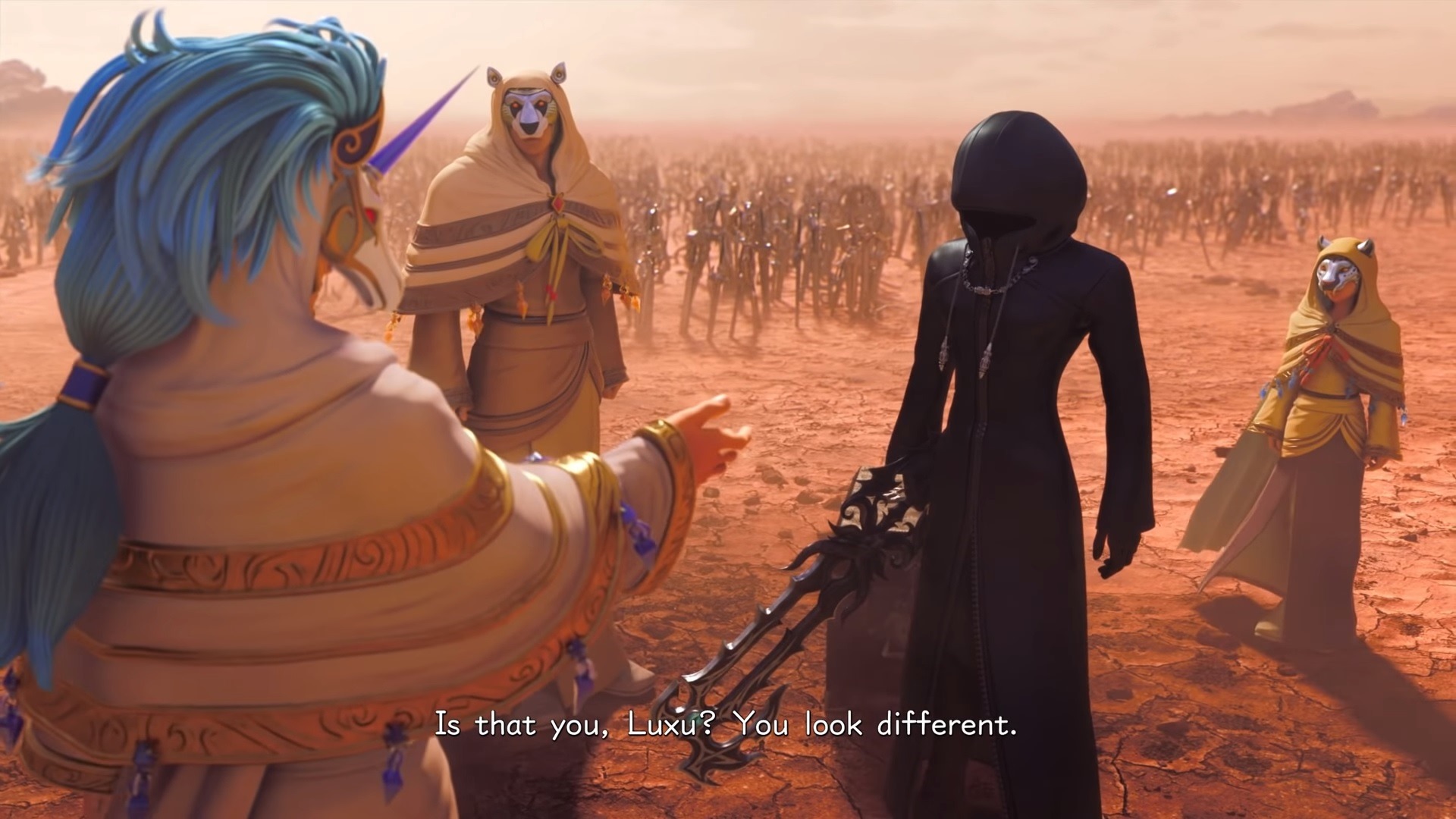 The Kingdom Hearts III epilogue is easy enough to unlock. It is a multipurpose affair, explaining Xigbar’s role in the conflict, what happened to Maleficent and Pete’s search for the prophesized black box, and where Sora and Riku could go next. To get to it, you need to make sure your game is at version 1.02 or later and you have beaten the game. If you have, visit the Theater from the main menu. you then get to see four minutes of Xigbar being mysterious with other Keyblade masters. This is when Kingdom Hearts III ties in even more to Kingdom Hearts χ and its Keyblade War. Xigbar, also known as Braig, and now also revealed to be Luxu, is the bearer of the No Name Keyblade and Master of Masters’ apprentice. He was supposed to protect the Black Box and its mysterious contents secret. While Luxu had No Name and its Gazing Eye, which allowed the Master of Masters to write the Book of Prophesies about the Keyblade War and future, the Foreteller Keyblade masters Aced, Ava, Gula, Invi, and Ira had copies of the book. Xigbar/Luxu was fulfilling his role as an observer by working under Master Xehanort, who was causing the recreated Keyblade war and finally gathering Aced, Gula, Invi, and Iri to the Keyblade Graveyard as part of his mission. Maleficent and Pete are watching what is happening in the distance. Then, the epilogue ends with a young Eraqus and Xehanort beginning a new game on the same sort of chess board, only it involves one white piece and seven black ones. This hints at possible closure of that storyline in the future.