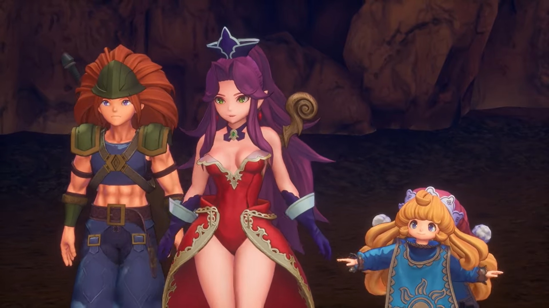The Trials of Mana trailer begins with a bit of a summary. It shows how people will choose three of the six available heroes for their party. Then, it mentions that there are eight Mana Stones the group will eventually need to visit, to gain the power of elemental spirits.