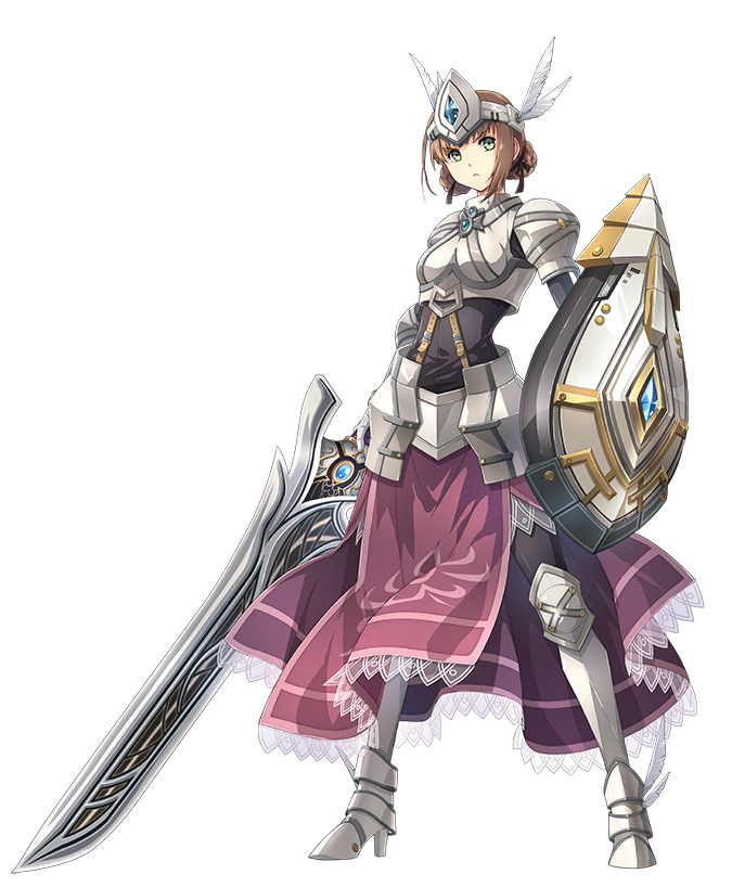 A Stahlritter who works for the Ouroboros society. During the Great Twilight incident, she began to question Arianrhod’s motives and temporarily helped out the old and new Class VII. During her time with Class VII, she began to understand Arianrhod’s thinking and grew as both a warrior and as a person. She later returned to Ouroboros, but continues to follow her own idea of justice as the leader of the Stahlritter. Wearing her armor once more, she appears in front of the defenders of Crossbell. Claire Rieveldt (CV: Ami Koshimizu)