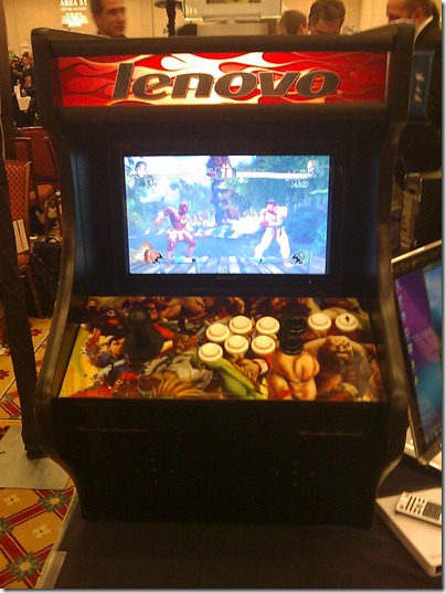 Any PC or emulated game would work with the machine. So, you could have a mini U.N. Squadron cabinet, but Lenovo has no plans to produce or sell pint-size arcade kits.