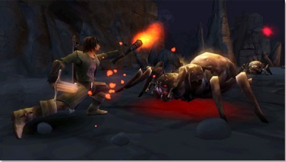 The difference here, though, is that swinging the remote in different directions results in different kinds of attacks. Side-to-side, down-to-up, up-to-down — different swings have different animations and, provided you don’t dislike the concept of motion-controls, it has potential. The problem is, while your abilities work just fine, the enemies in Aragorn’s Quest don’t give you much of an opportunity to explore them.