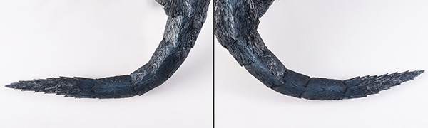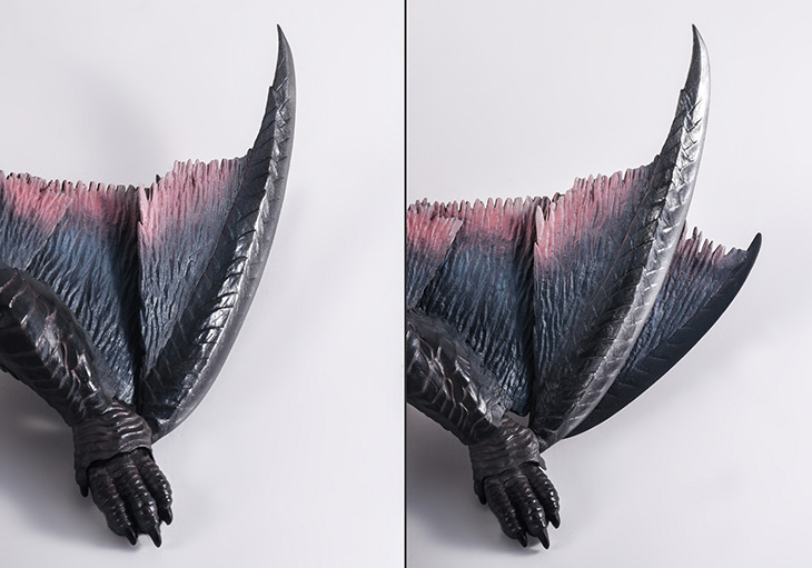 You can also open and close the arm blades. The spline isn’t normally visible, but you can bring them out to replicate Nargacuga’s menacing strike.