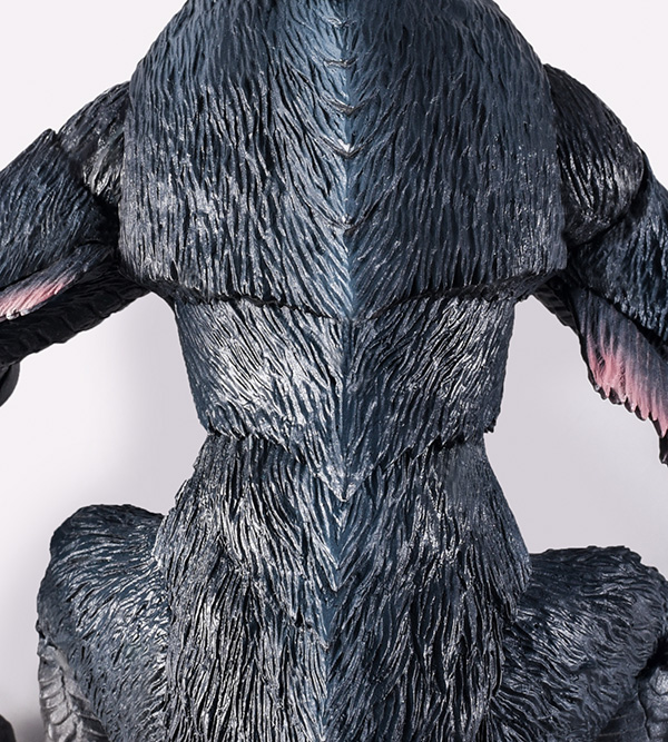The above image gives us a closer look at the back, where we can see the two points of articulation on its torso. This allows for more realistic “animalistic” poses.