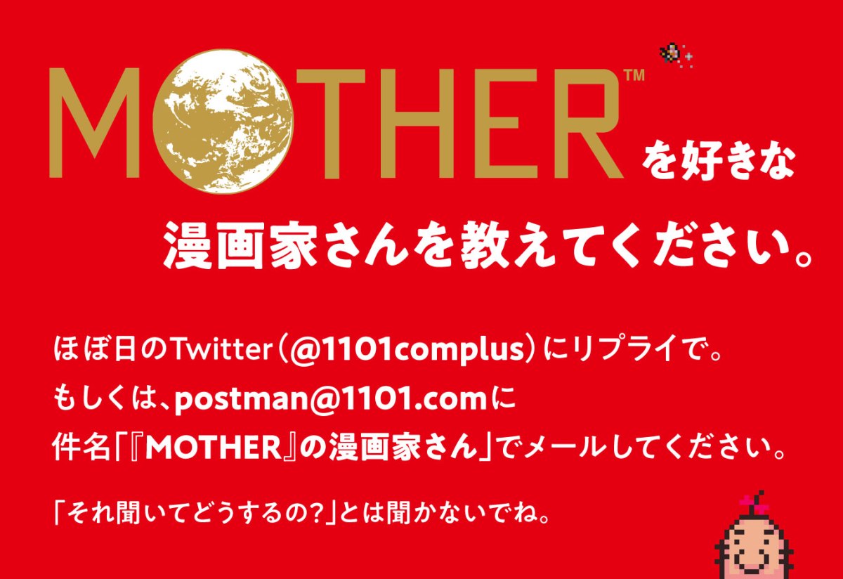 Good news for Mother fans–there might be something new coming out related to the series. The announcement comes via Mother series creator Shigesato Itoi’s company, Hobonichi Shinbun, which asked on Twitter if there are any mangaka who likes the series. According to Hobonichi Shinbun, suggestions for potential mangaka should be included in replies to the Tweet or otherwise mailed to their email at [email protected]. The tweet are also being very secretive about what this is for, as they explicitly ask people not to ask what this sudden question is for.