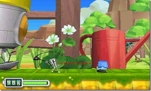 RT: Chibi-Robo’s height is about 10 centimeters. There really wasn’t a good way for us to show that in-game. The first step to solving this problem was by implementing background elements into the stage – for example, a person knows how large a dandelion is, so you might see a dandelion in the background that towers over Chibi-Robo. However, it still wasn’t quite enough to express the actual size of Chibi-Robo. We kind of wanted to use something that we have in real life so that players can make that instant connection to his height.