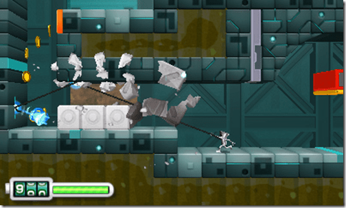 RT: The first big challenge that we had to face was, since Nintendo has a lot of side-scrolling games with their big-name characters, we had to consider how the make Zip-Lash! stand out. One of the first things Skip Ltd. suggested was having Chibi-Robo throw or spin his cord instead of having it plugged into the wall.