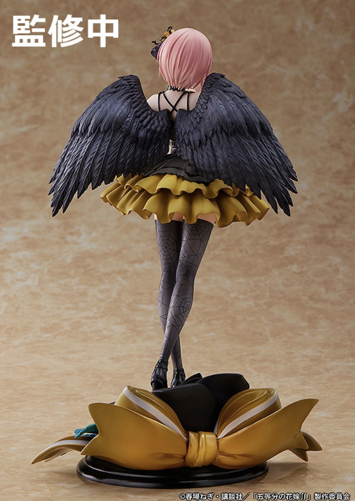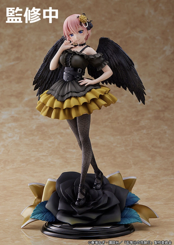 Two sisters from The Quintessential Quintuplets will get Fallen Angel figures, as Good Smile Company revealed Ichika and Nino Nakano ones are on the way. Each one features one of the sisters in a dress that matches their color motif and black wings. They will both appear first in Japan in May 2023. Then, they will show up in North America in July 2023. Each one will cost ¥29,700/$195.99. Both the Ichika and Nino The Quintessential Quintuplets figures are over 10 inches tall. However, even though Ichika is the “oldest” sister, Nino is taller at almost 10.5 inches. (Both of them are 1/7th scale models.) Each one is wearing a dress, with Ichika’s being black and yellow and Nino’s black and purple. They both are standing on black roses with a ribbon “tied” to them. Nino also has one of her regular butterfly hairclips in her hair. Here’s a closer at the upcoming Ichika Fallen Angel figure: