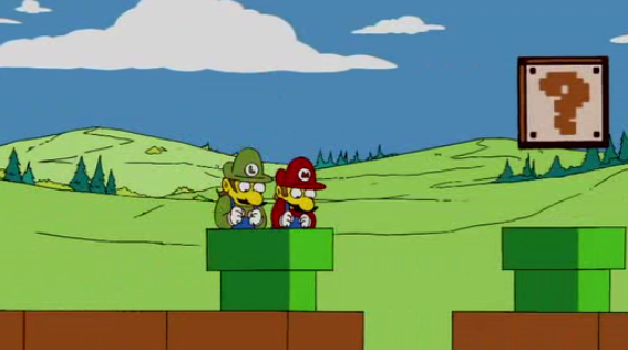 In this week’s episode of The Simpsons, Bart wishes he had a brother and dreams of Super Mario Brothers.
