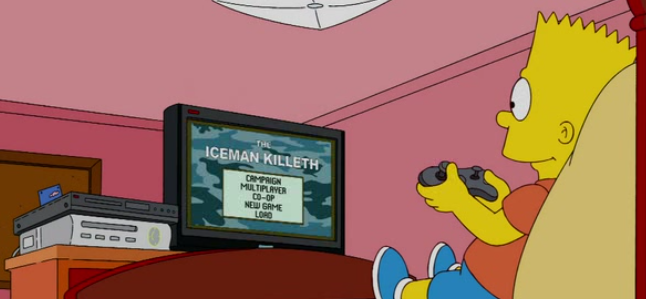 There’s an Xbox bit too where Bart plays The Iceman Killeth, a made for TV, first person, snowman shooter.