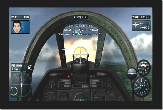 Does the setting sound familiar? It should if you watched the novel turned film Sky Crawlers. While the film centers around Kildren, seemingly immortal pilots that look like kids, The Sky Crawlers: Innocent Aces takes place before those events and expects you watched the film before popping the game in your Wii. Flesh and blood humans are still hired during the game’s timeline while companies are testing Kildren. Compared to other dogfighting games, The Sky Crawlers: Innocent Aces is an elevation above when it comes down to story. During missions there are fully voiced intercom chats that personify your allies. Kou, codenamed “Sprite”, arrogantly says “they were brought down by their own incompetence” when an enemy is shot down. Maumi, Lynx’s self proclaimed rival, says “it’s so beautiful… all of the blue and white,” on her first mission, demonstrating how green she is to the skies. These bits supplement the story, which is told in anime cutscenes between missions.