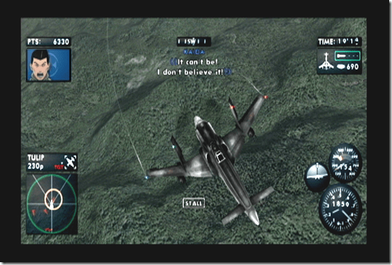 The controls take time to get used to, but you’ll fly like a “cheetah”, Lynx’s code name when he gets promoted to captain, in no time. Part of the reason is the most complicated movements, somersaults and U-turns are done with manual controls. You can flip through a list of advanced aerial techniques with the nunchuck’s analog stick. Also, the most advanced maneuver where you flip behind an enemy jet in prime position to attack is done by simply staying within range and pressing A when a meter fills up. In the later stages, I relied on using TMCs (short for tactical maneuver command) to shoot enemies down. Spiraling behind an enemy after following them is just way too convenient.