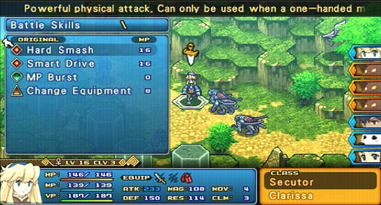 Instead, the game forces you to really take advantage of all the strengths each of the game's classes has and apply them to a vast majority of battles. As a matter of fact, most battles have an objective that require the use of a certain class(es) to get through; and if you'd rather not bother using the class(es) in question, the odds of you having a hard time getting through the battle and surviving are really, really, high. If that isn't convincing enough of its challenge, then perhaps knowing each of your characters have Vitality Points that deplete per turn can make you consider how important strategy and timing are to the game. Whether the use of Vitality Points can be attributed to poor design or clever design is really up to you and how you approach SRPGs; but for me, VP is smart. It not only makes you keep an eye on your characters and more aware of the flow of battle, but it consciously makes you aware that the time in battle is not infinite and that victory needs to be achieved before your entire party dies out.