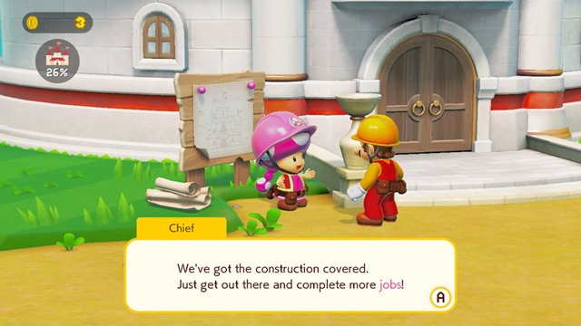 Then, there are the outfit parts for your Builder. As Peach’s castle is restored, other people may appear around the area or you could get quests that are a little unconventional. For example Undodog will lurk around with a few quests, and others might unlock after you seem to have completed everything. Going through these additional quests can get you new accessories, like a Reset Dress. They’re cosmetic items, but still little ways to say “Kudos!” all the same.