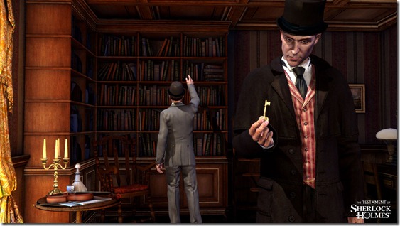 Inside Testament of Sherlock Holmes beats the heart of classic point-and-click adventure games. On the outside, there are a few differences, like the ability to shift to a first person view and deducing the events of a murder from a few clues, but the sizable majority of the game is simply Sherlock and/or Watson locked into an area and unable to leave until every clue has been found and all the proper items have been used on the proper objects. While this is fine, I feel as though this skeleton undermines the idea of playing as Sherlock Holmes. The game comes so close, but adherence to genre somewhat undermines the idea that I’m controlling a genius detective. Having to figure out a clever puzzle without any hints made me feel like a genius (especially when it’s well-implemented into the story), but when puzzles started to feel like filler, it snapped me out of the fantasy. There are a pair of puzzles early in the game represent this divide. One involves moving a knight across a chess board. Your goal is to find the last space it would end up after having moved to every other space on the board, with no overlap. After a number of attempts at trying to force my way through the puzzle, the game offered me a couple of options to help me along. I could use Sherlock’s “Sixth Sense” to show me the next move I should do (more on that later), or I could skip the puzzle entirely. After a few more attempts where I refused help, I finally had the Sixth Sense guide me to the end. As it turned out, the last square that the knight would land on was the center square. A square that had more wear and tear on it than all of the others. I then had to use Sherlock’s pocket knife to raise that tile from the floor and find a secret stash of letters.