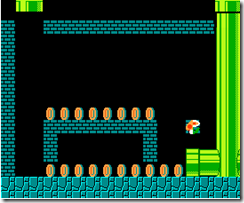 The Nintendo rep also pointed out a homage to Super Mario Bros. When I went down a pipe one of the bonus rooms had the same layout as one of the underground areas in the original NES game.
