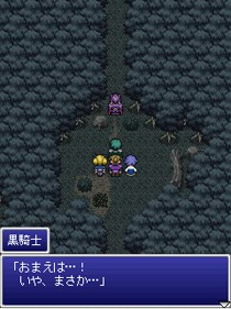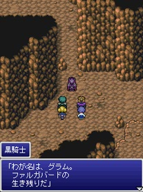 His next destination is the Dwarf village, but he has to cross through the Forest of Darkness to get there. There he meets Gram, a dark knight with a bloodstained sword. It is said that a knight with that name perished in a battle with the Empire. Who is this masked man?