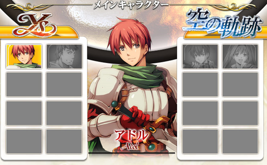 That’s all Falcom confirmed, but we have a rough idea of how many characters are in Ys vs. Sora no Kiseki. The character page on the official site shows eight boxes for Ys characters and eight for Sora no Kiseki’s heroes. So, 16? That means Falcom has 10 more to announce. Two other characters were accidentally revealed in this screenshot.