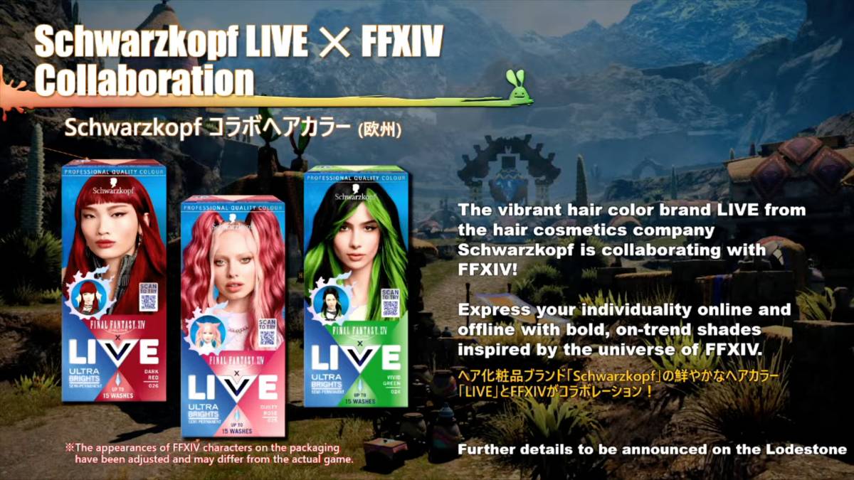 The Schwarzkopf Live line of hair dye is already available in multiple countries worldwide. For example, both the Amazon US and Amazon UK sites both sell it. None of the colors mentioned in the art during the Letter from the Producer Live appear on the official website for the hair dye, so it seems these could be original colors instead of existing ones being released in FFXIV packaging.