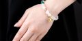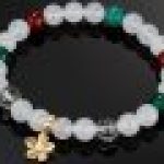 This bracelet has about a 6.5” circumference, to help you better gauge if it will fit your hand. The different beads are made of Amazonite, green, red, and white agate, and quartz and seem as though they could call to mind the materia you’d use in the game. The charm has a yellow plating to it, to resemble the yellow lilies, but is made of SV925 silver.