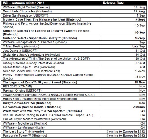 Oh, and I suppose we should mention that The Last Story and Pandora’s Tower are officially confirmed for a 2012 European release as well. They’re at the very bottom of the list.