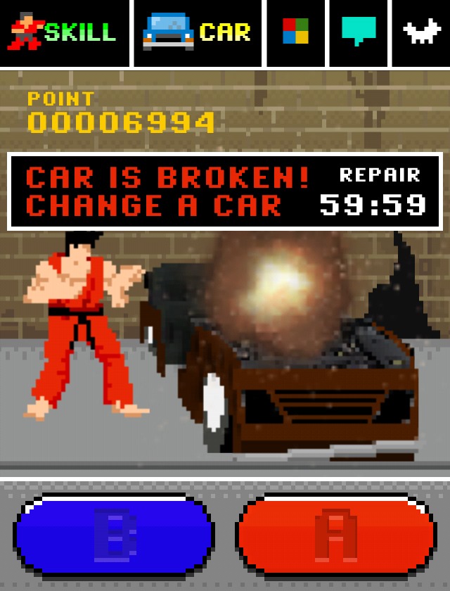 Bonus Round is an aptly named title since this game is *just* the Street Fighter / Final Fight car smashing bonus game. The A button is for kicks and the B button makes the combination of Ryu and Ken punch. Players gain points by breaking cars which can use to purchase new combos.