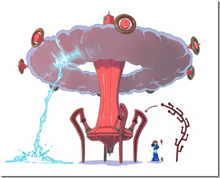 Capcom weren’t sure what was going on behind the cloud-ring, so art director, Ishihara, got in touch with the fan who sent the design in and asked if he could provide them with a more detailed blueprint of his Reaverbot. Once he did, they modified the original design to create the final concept.