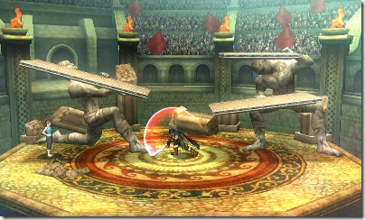 Update: A number of our readers have pointed out that the stage actually is from Fire Emblem: Awakening. Despite having played the game, I didn’t recognize it in the slightest. Original Story: Super Smash Bros. on the Nintendo 3DS will have at least one Fire Emblem stage, but this one doesn’t appear to be from Fire Emblem: Awakening. The stage in question (above) actually looks reminiscent of one section of the Castle Siege stage from Super Smash Bros. Brawl, but with a number of differences. Director Masahiro Sakurai showed it off last week.