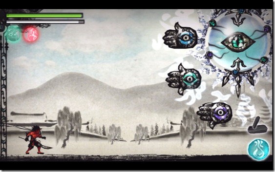Enemies in Sumioni come in various shapes and sizes, and you deal with them by swiping your fingers across the Vita’s touch screen. One of the enemies you’ll face is the “Pagoda”. These come in different toughness varieties, with early versions brandishing swords or bows and higher-level Pagodas using cannons, saw blades and drills.
