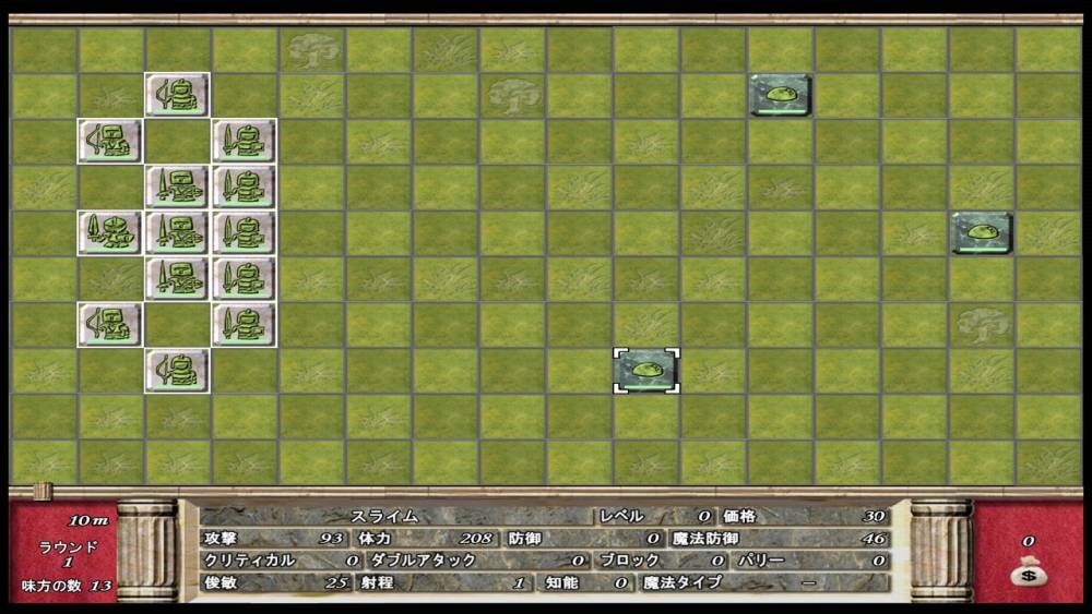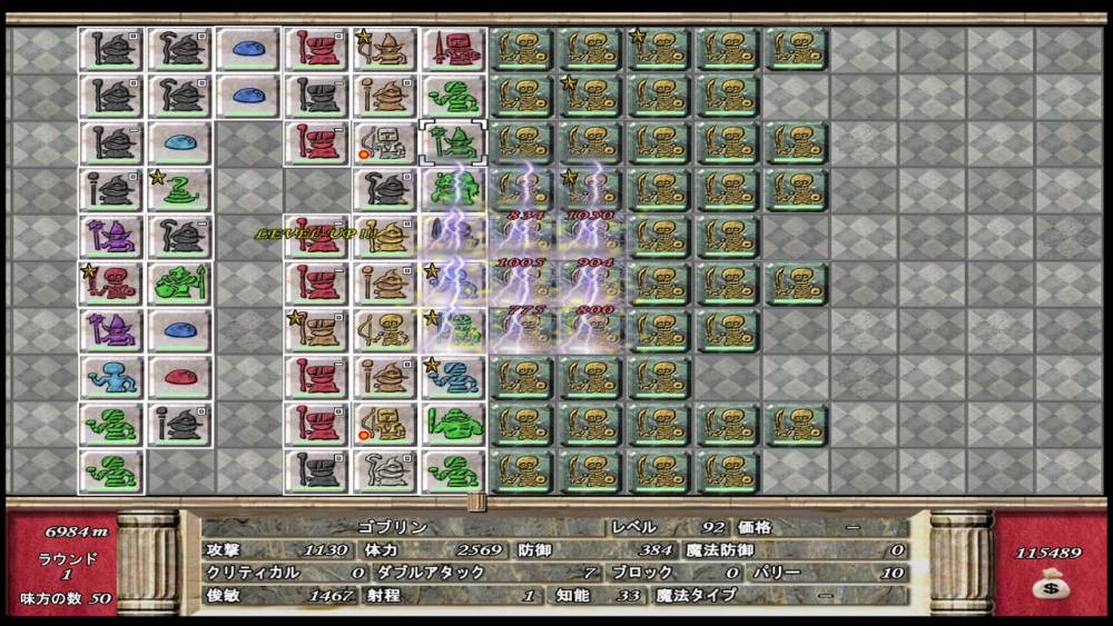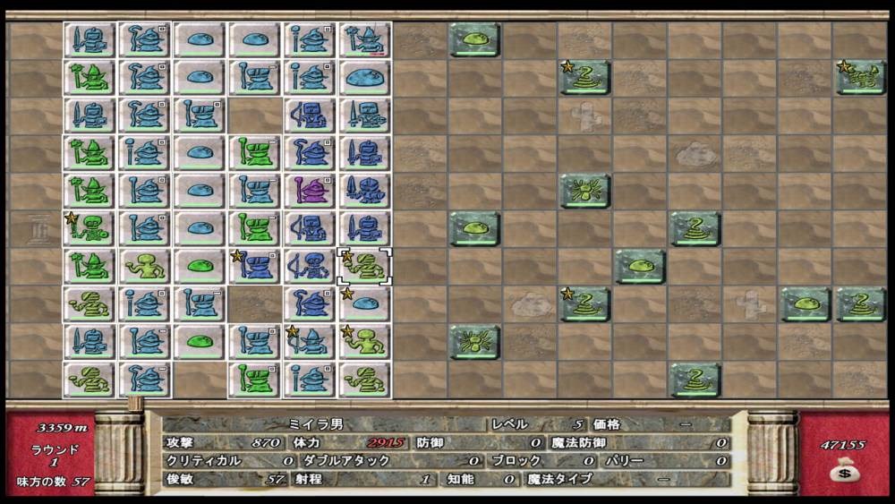 Battle of Tiles EX has giant battles, but instead of troops running all over the place like in Dragon Force units in this game are game pieces. Heroes and monsters are tiles you can move in place to defeat the computer. There are tiles that represent common small fry enemies like slimes, skeletons, and goblins. Defeat these and you earn gold which can be used to purchase monsters for your army.