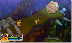 The entrance of Kiritachi Mountain starts the player out with a nice view, surrounded by waterfalls. He’s then shown pulling a big item acquired by defeating a tough monster. Turn it in for a hefty reward!